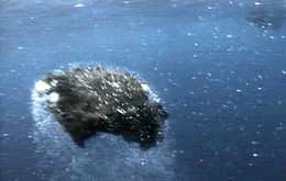 | Foto 3 Balão de lava Liberta uma fumarola branca, provocada pelo choque de temperaturas |