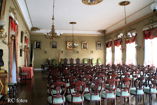 Na Sala de Sessões destaca-se o valioso mobiliário do hemiciclo em madeira de jacarandá, executado na década de 1950 pelas oficinas da escola da Fundação Ricardo Espírito Santo Silva, ostentando em talha os três brasões usados pelo município ao longo dos séculos.(em)